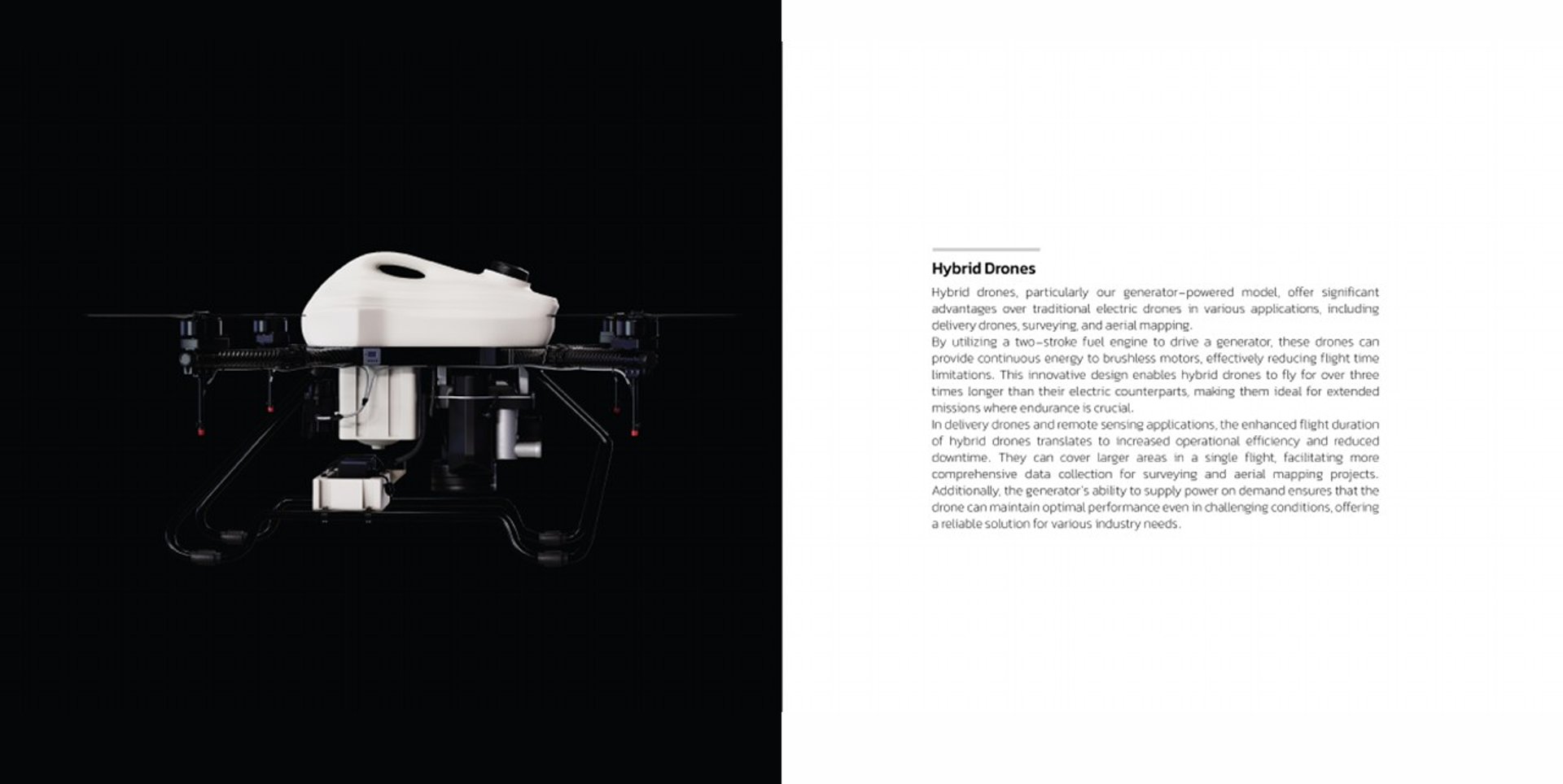 Since our inception in 2013 with Phoenix Brand, we have focused on developing innovative heavy-lift drones tailored for various applications, including agricultural drones capable of carrying payloads up to 55 kilograms, as well as advanced surveying and remote sensing drones with exceptional flight durations. Our commitment to versatility extends beyond these sectors; we are equipped to design and manufacture vertical take-off drones with payload capacities of up to 200 kilograms and flight durations exceeding 90 minutes, all customized to meet specific project requirements.